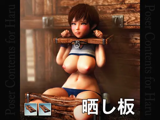 首と手の拘束用、脚の拘束用の晒し板が2つ、台座が2つ。板のサイズや穴の位置など各種調整用パラメーター、6つのHaru用ポーズデータが付属。サイズ変更も容易で、他フィギュアにも合わせて使用可能。
